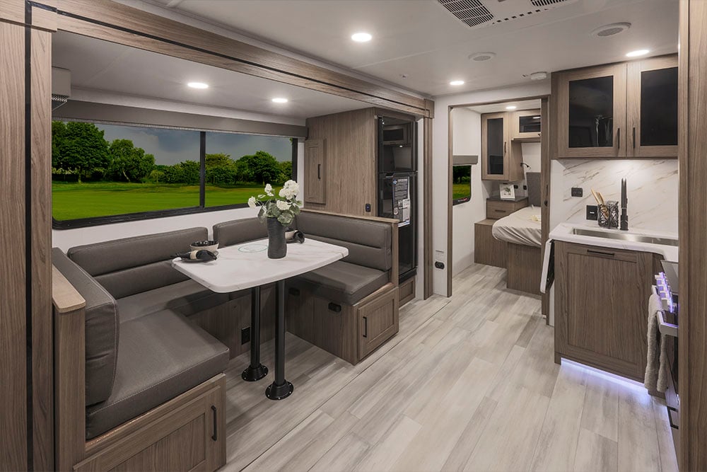 Modern interiors, strong construction, and tow-friendly designs without stepping into fifth-wheel territory.