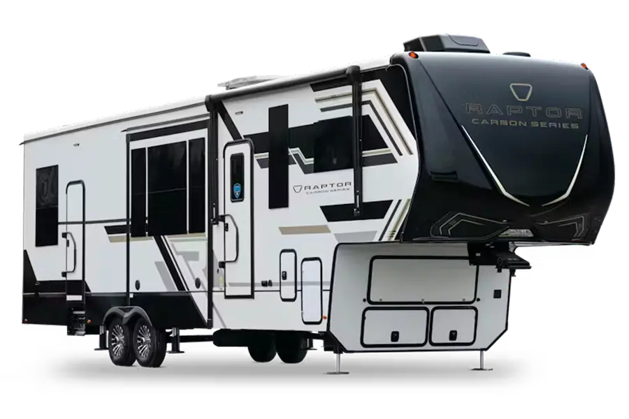 Outback OBX, certain Cougar floorplans, and many Raptor toy haulers offer solar packages, off-road construction, and off-grid friendly layouts.
